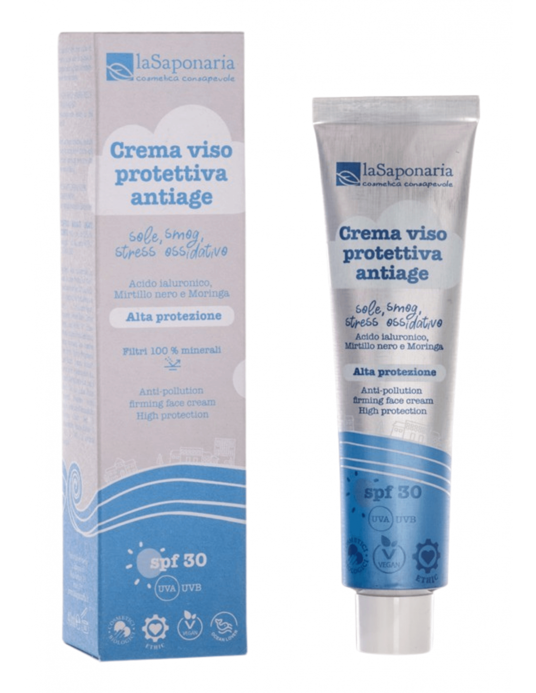 La Crema Viso Protettiva Antiage SPF 30 offre una triplice azione e protezione:
